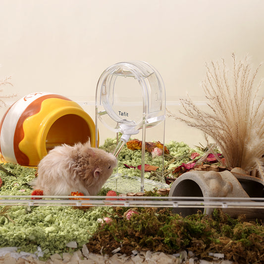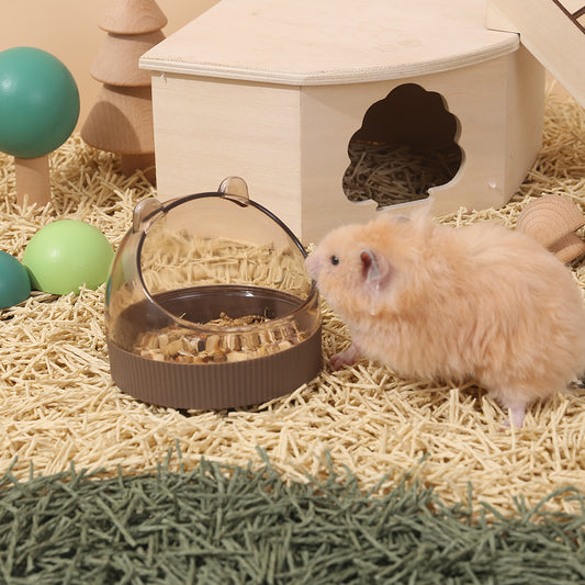 A food bowl helps control the amount of food, and a water bottle helps the owner reduce maintenance frequency.