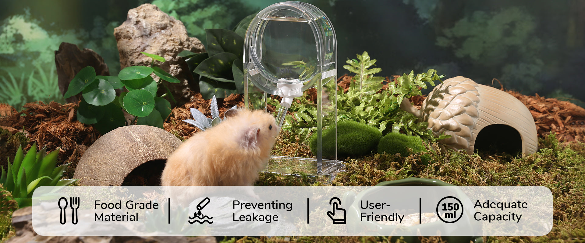 - With a water capacity of 150ml, it can provide approximately 2 weeks of drinking water for a hamster.