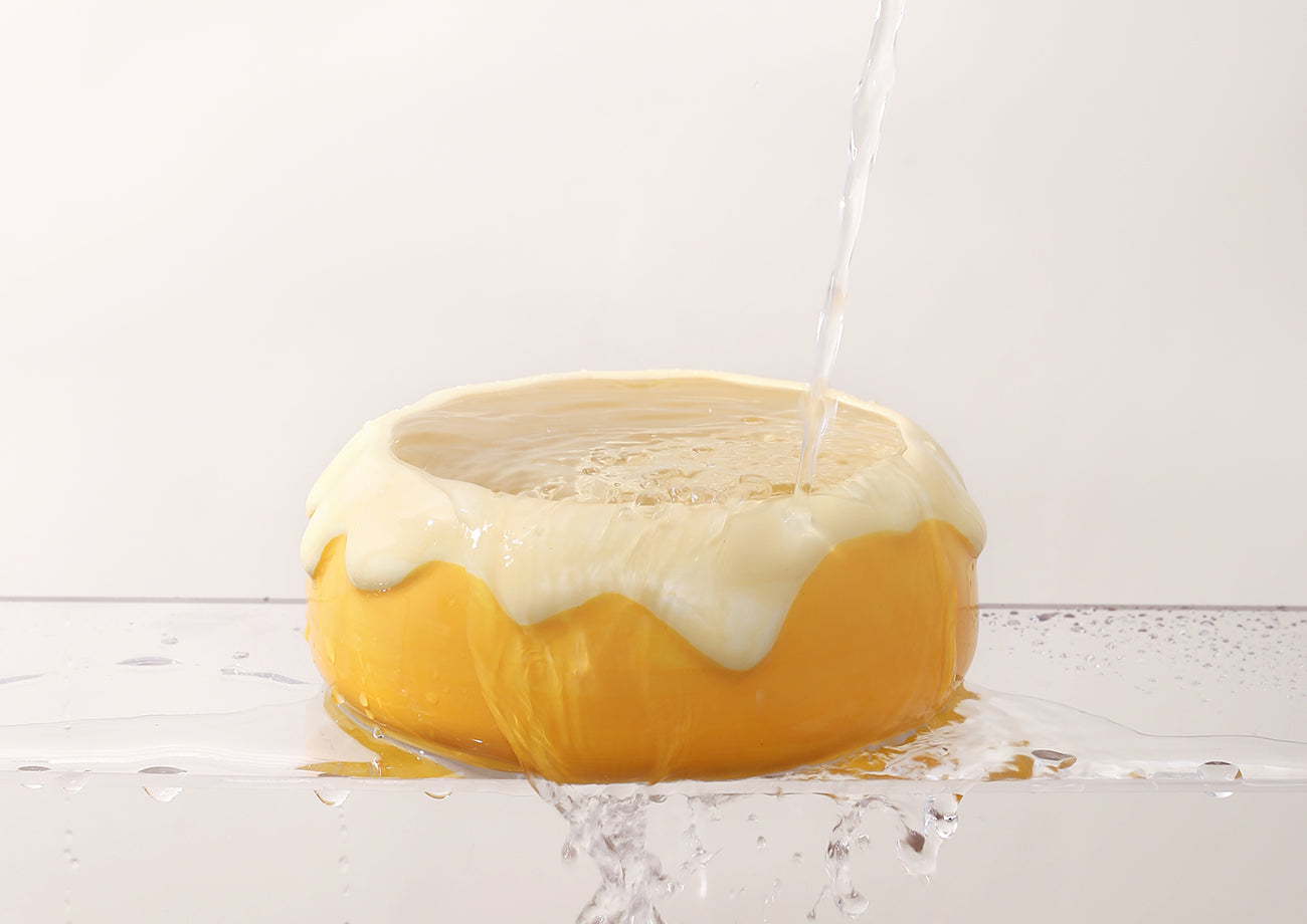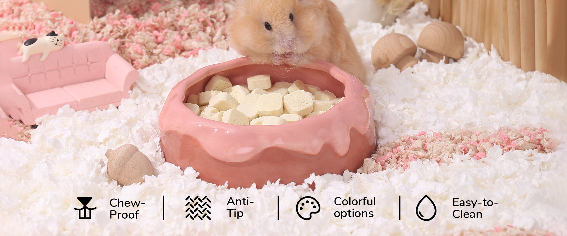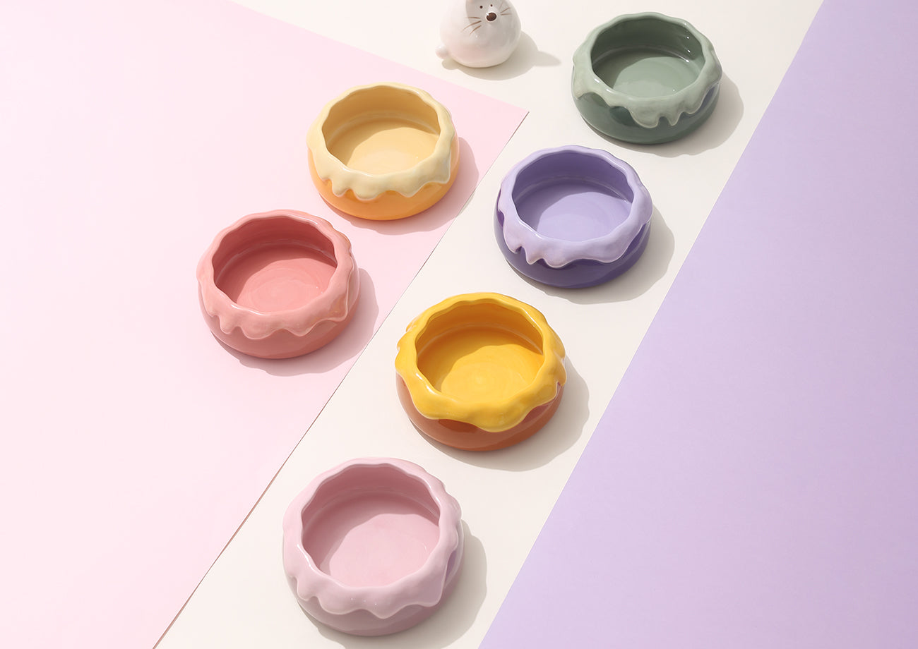 - A ceramic food bowl shaped like pudding, making mealtime more enjoyable for small animals.