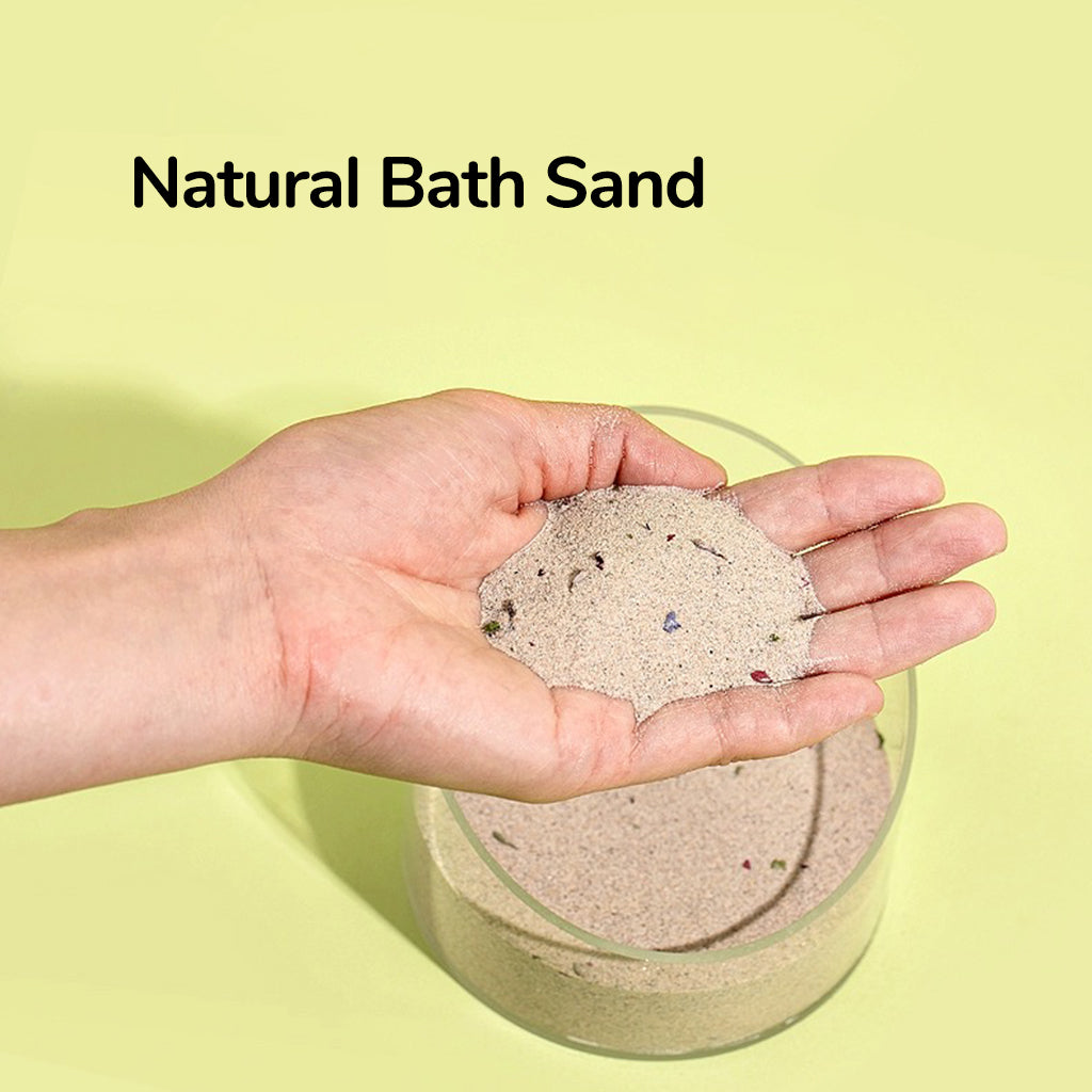 - Bath sand made from a mixture of 70% natural desert sand and 30% natural pumice granules.