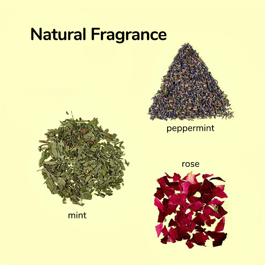 Added dried mint leaves, rose petals, and lavender to provide a natural, pleasant scent.