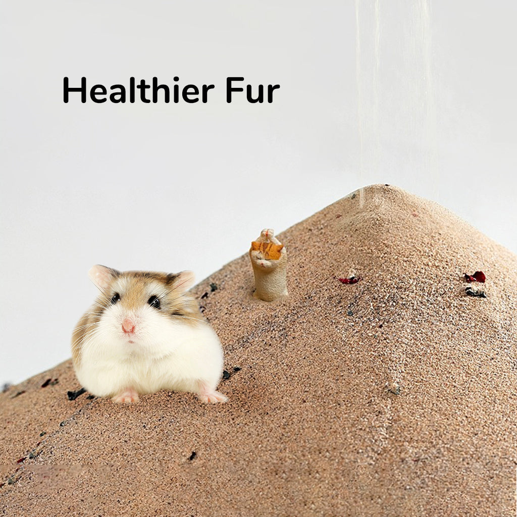 - The natural bath sand has uniform particles, is free of impurities, and produces low dust, allowing hamsters to enjoy a healthy bathing experience.