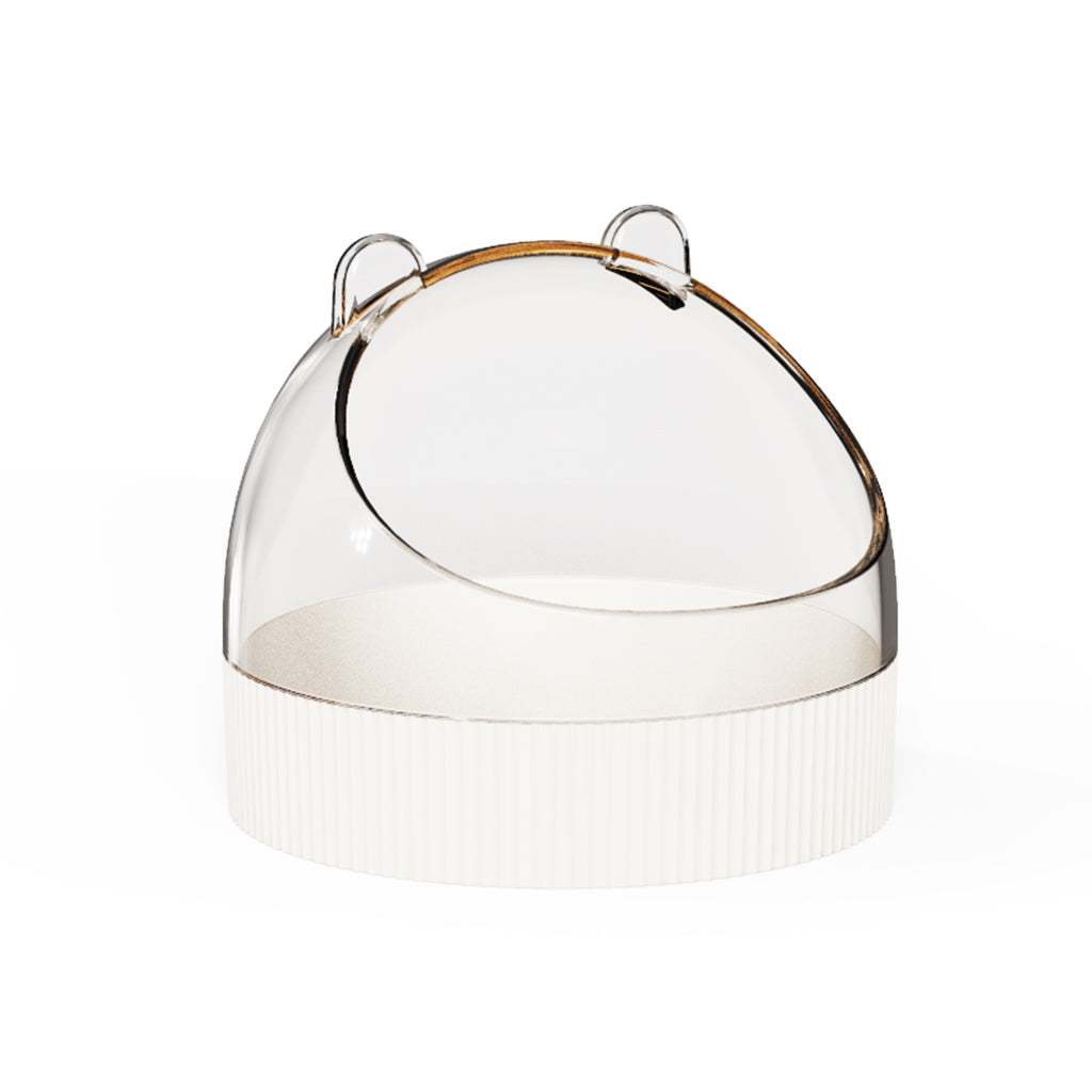 - A cute dome-shaped food bowl with a curved opening for easy dining for small animals.