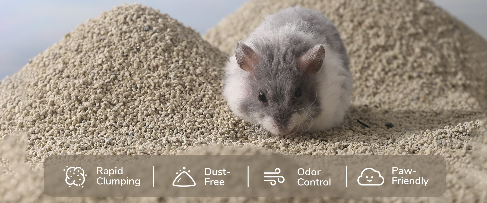 Natural mineral litter quickly absorbs urine to form tight clumps, making cleaning easy.