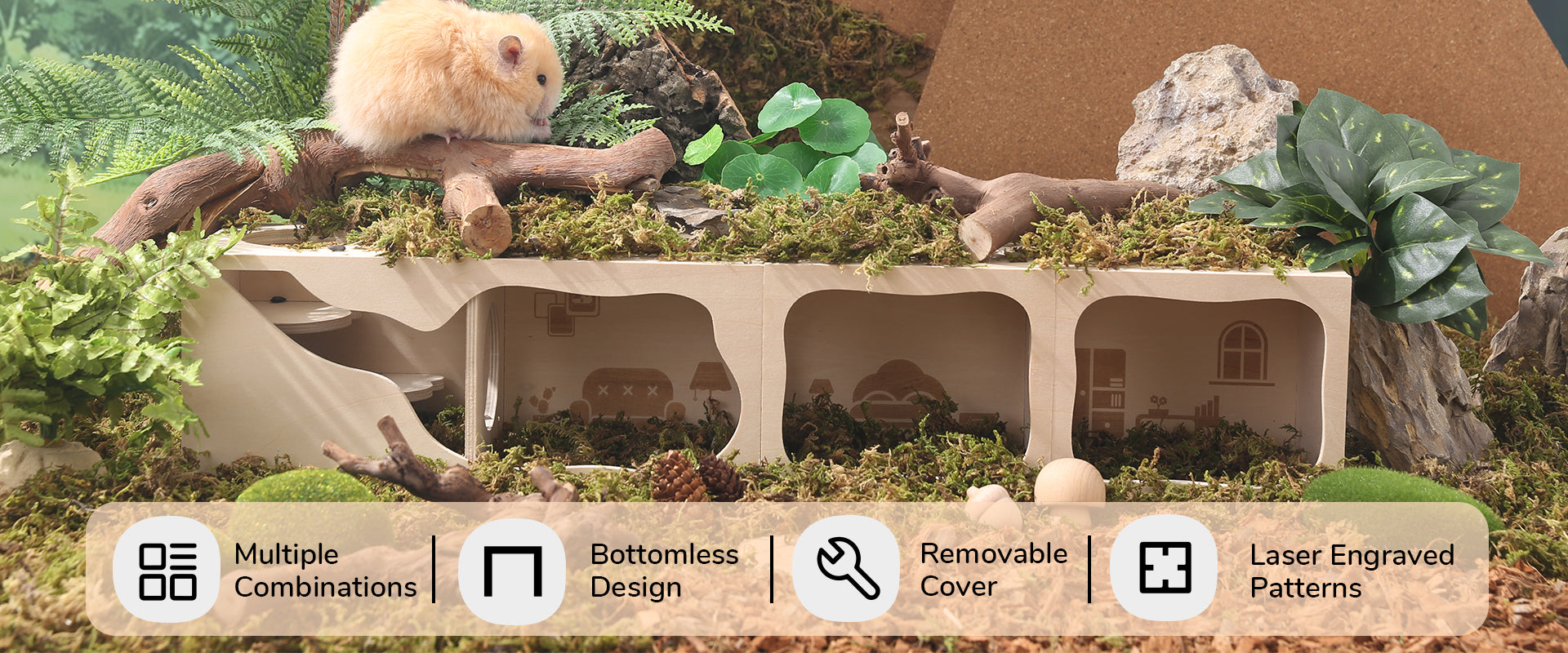 Lifelike patterns make the hamster's hideout cozier and enrich the owner's landscape.