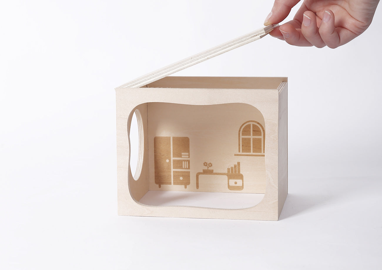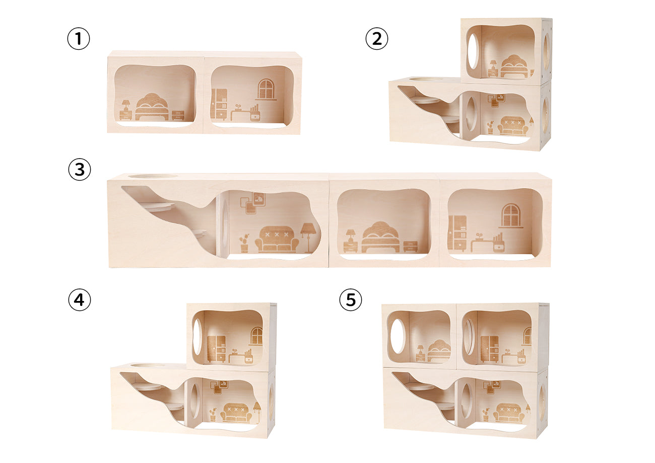- A set of combinable bionic wooden hideouts featuring a hidden magnetic structure that allows for free assembly of multiple spaces.